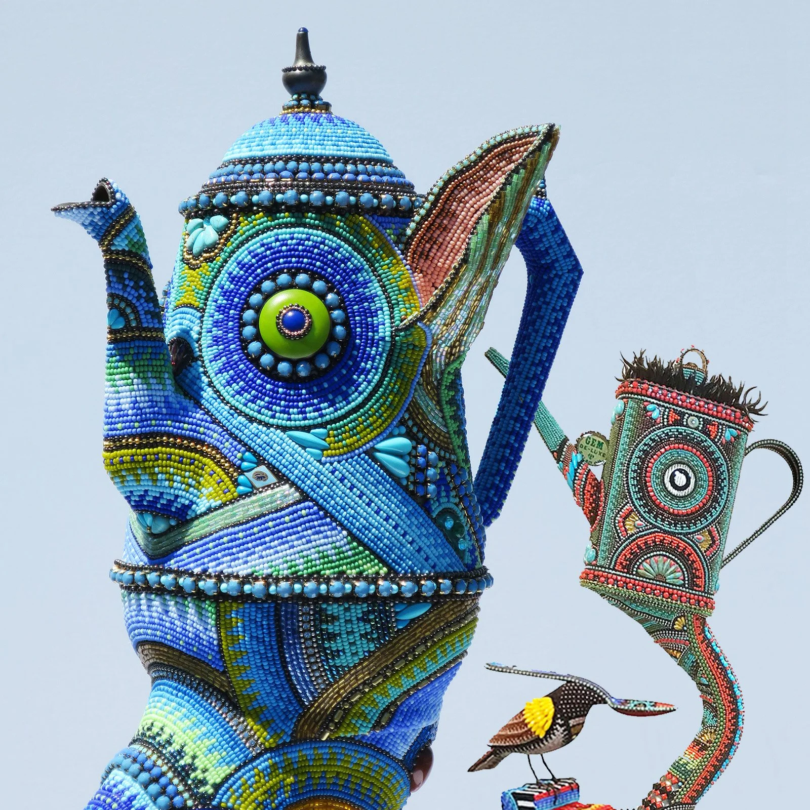 A group of creatures comes together around a cup of tea. Each one is alert, yet seems enthralled by their own private thoughts. As does the cup. And table. And even the tablecloth! All alive and dreaming of worlds that we can’t even imagine. Or can we?