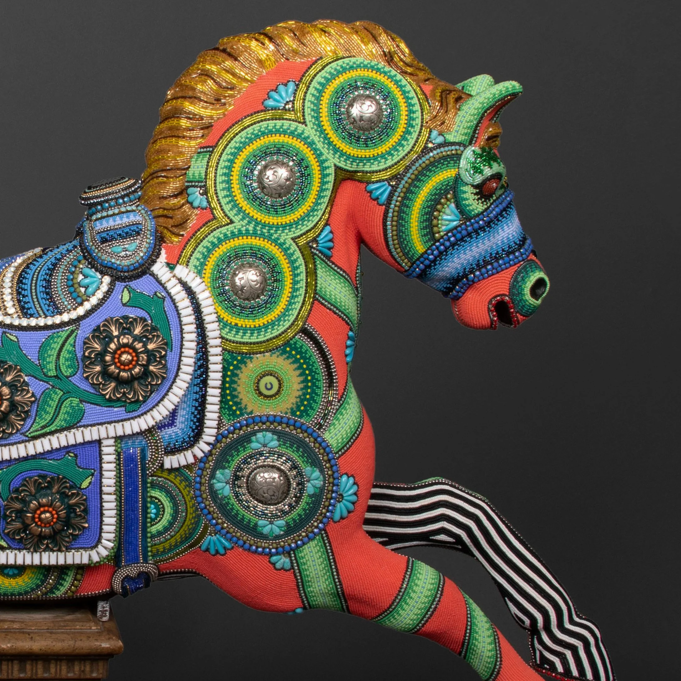 This piece was made for the Pony Up Project, a fundraiser organized by the Silver Heron Gallery, Depoe Bay, Oregon. Each artist was given the pony substrate and asked to adorn it in their personal style.